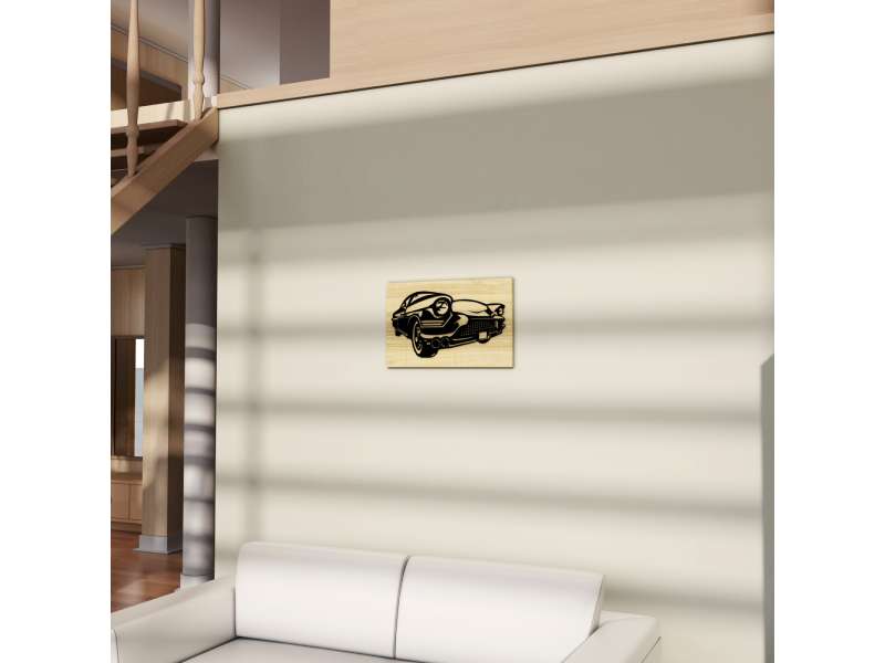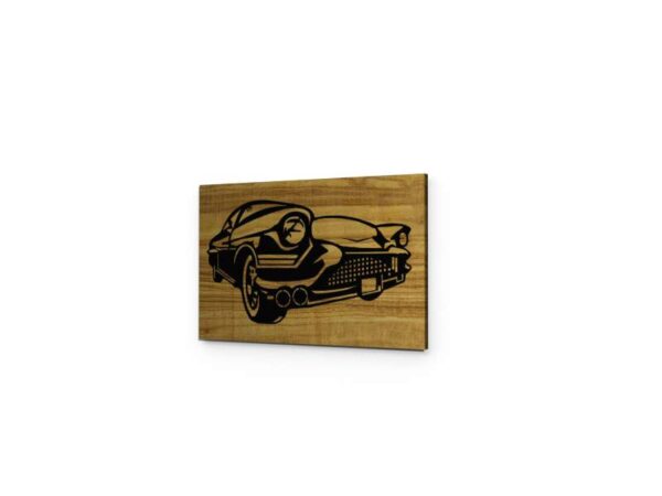 - Chevrolet dekoratif duvar tablosu, ahşap tabla üstüne, lazer yakma tekniğiyle tek parça olarak üretilmiştir.