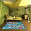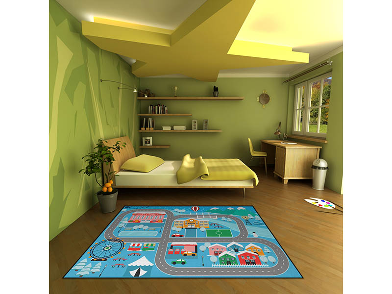 - Pvc tabanlı çocuk odası halıları, kadifemsi tay tüyü kumaş üzeri baskı, arada soğuk geçirmez sünger ve sizi düşme- kayma gibi ev kazalarından koruyan ve her zemine tutunabilen, dökülme yapmayan suni deri taban kullanılarak üretilmiştir.